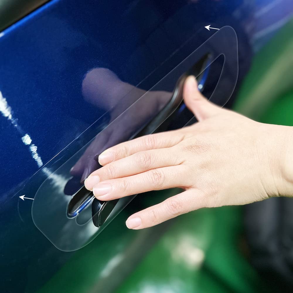 - Durable transparent film cut precisely for a perfect fit protects door handles from scratches and wear.